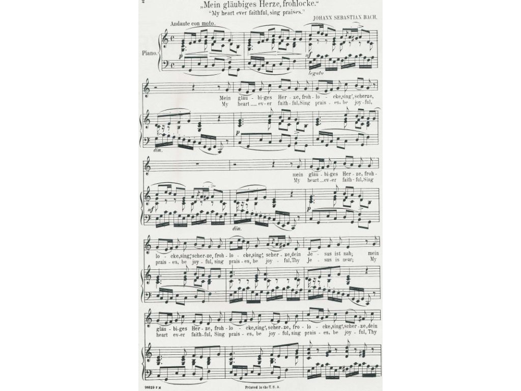 My heart ever faithful, sing praises (Mein glaubiges Herze, frohlocke), známá skladba od J.S.Bach v úpravě pro nízké hlasy a doprovodem klavíru. Texty skladby je uveden v angličtině i němčině.