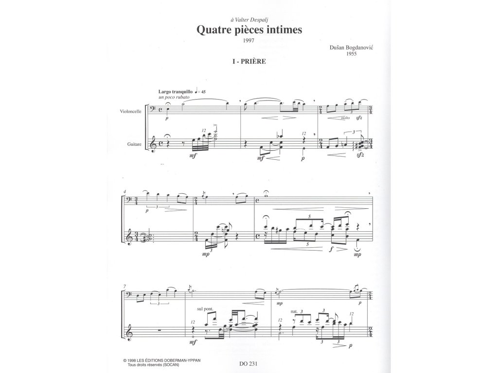 Bogdanovic: Quatre pieces intimes / čtyři skladby pro kytaru a violoncello