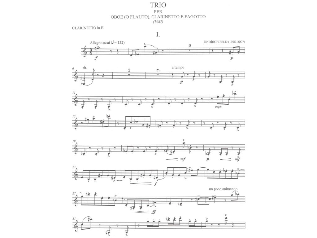 FELD, Jindřich - Trio pro hoboj (flétnu), klarinet a fagot / partitura + party
