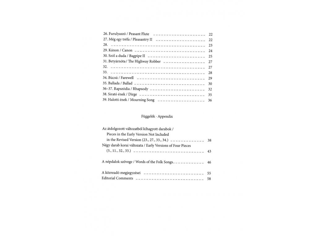 Tento druhý díl dvoudílného titulu Bartók For Children (Bartók dětem) obsahuje 39 Bartókových drobných skladeb pro děti nebo Bartókem upravených folkových skladeb pro piano. Na konci sešitu můžete také najít texty k některým uvedeným lidovým skladbám.