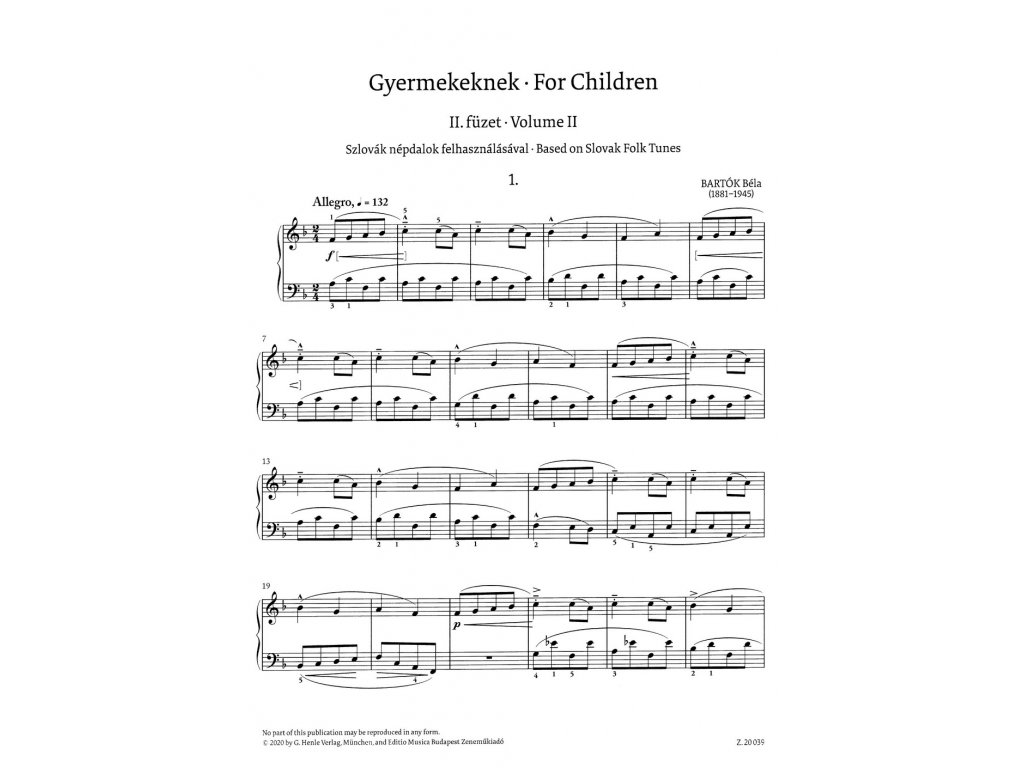 For Children II. by Béla Bartók / klavír