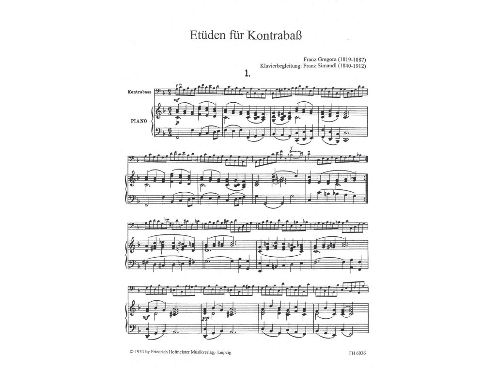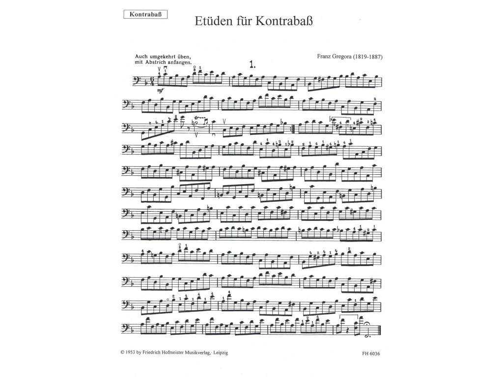 GREGORA FRANZ: ETUEDEN fur Kontrabass / kontrabas a klavír