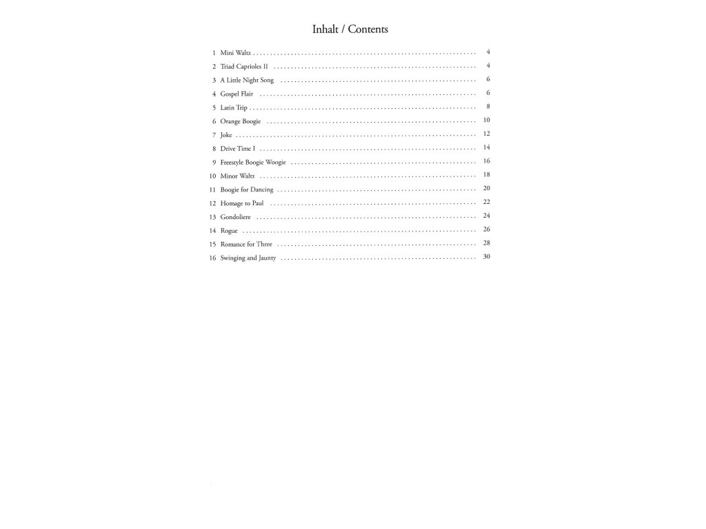 "Jazz Parnass" je kolekce 16 skladeb, které Manfred Schmitz napsal nebo upravil pro šestiruční klavír. Sešit obsahuje skladby různých hudebních stylů a žánrů, od valčíku přes gospel až po swing a skvělé se hodí pro souborou hru. Díky uživatelsky přívětivému designu knihy s rozkládacími stránkami se všechni tři klavíristé vidí své party vedle sebe a mohou skladby bez problému hrát.