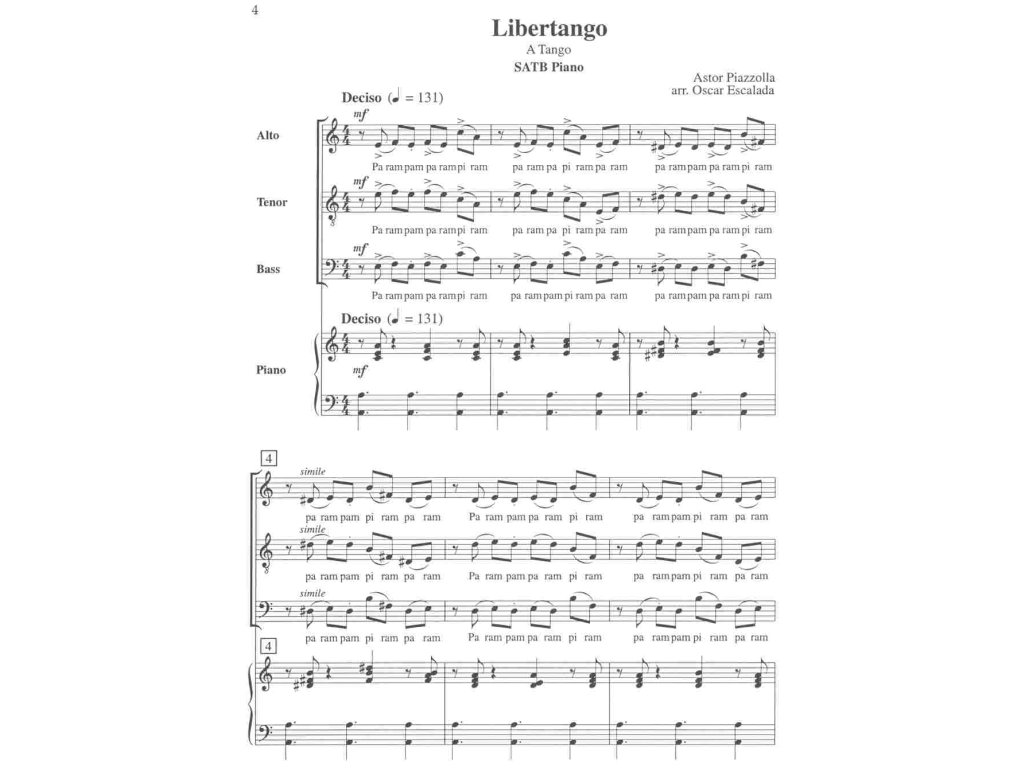 Tento titul Vám nabízí LIEBERTANGO, krásné, melodické a velmi sympatické tango v úpravě pro SATB vokální soubor s klavírním doprovodem. Text tohoto tanga nelze zapomenout, protože ho tvoří pouze jednoduché sketovací slabiky. Povedený titul, který budou členové Vašeho vokálního souboru rádi zpívat a který Vám zaručí úspěch u Všech Vašich posluchačů.