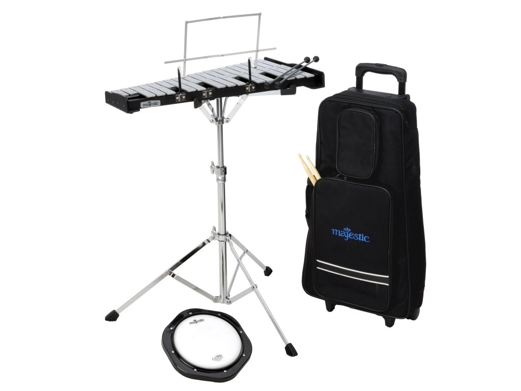 MAJESTIC študentský set zvonkohra & Practice Pad Kit, gigbag na kolieskach