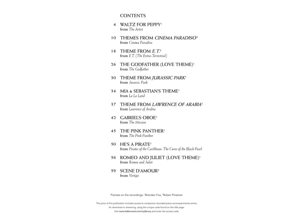 Kolekce známých filmových melodií v povedeném aranžmá pro středně pokročilé hráče s klavírním doprovodem nebo online nahraným klavírním doprovodem.