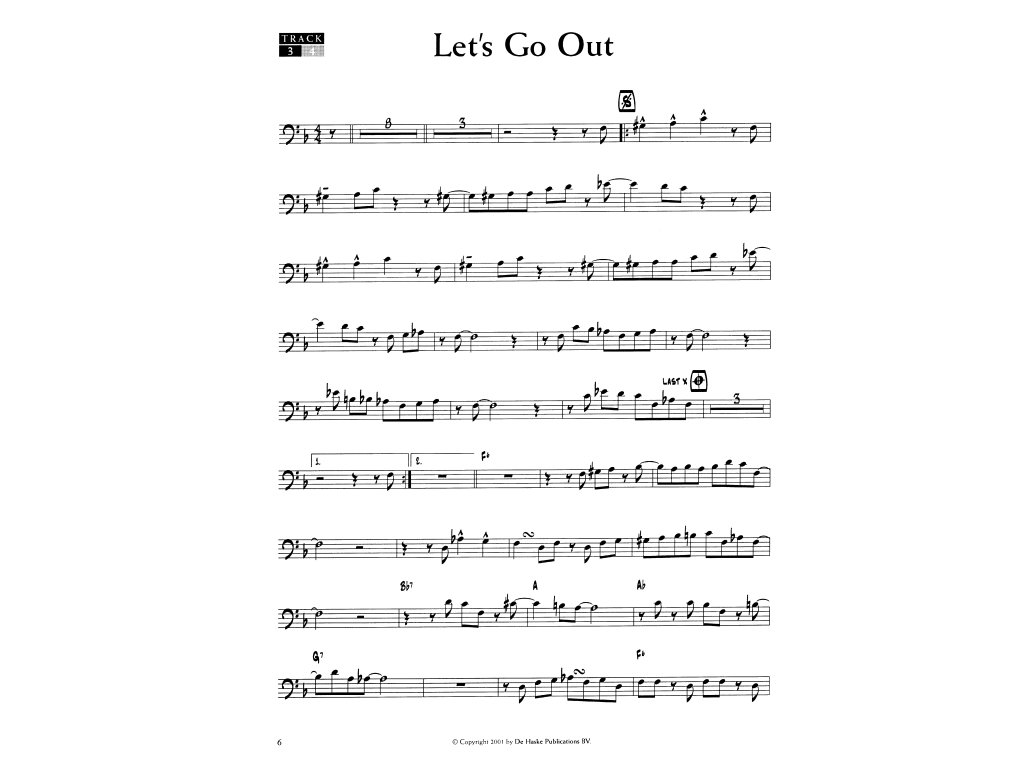 Sešit pro trombon obsahuje party jak pro C trombon hrající v basovém klíči, tak pro Bb trombon hrající v houslovém klíči.