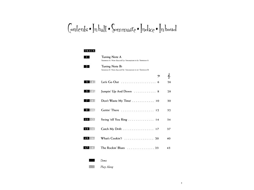 Série sešitů s "fantastickým" živým big bandovým doprovodem na přiloženém CD. Pro všechny hráče, kteří mají rádi swingovou muziku bude tento sešit velmi příjemným zážitkem a potěšením si zahrát se skvělým big bandem v zádech. Každá skladba je CD nahrána dvakrát, jednou v plné verzi a podruhé pouze doprovod pro Vaši hru s doprovodem na CD.