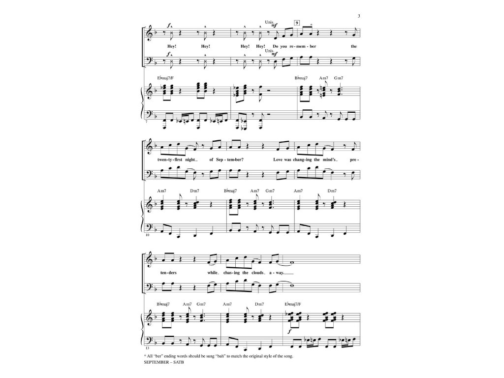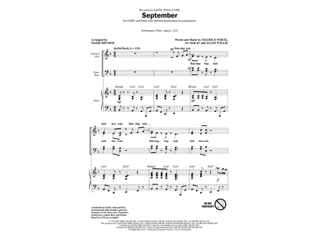 Pěkná rytmická populární skladba nazpívaná mimo jiné skupinou Earth, Wind & Fire, piano doprovod včetně akordových značek.