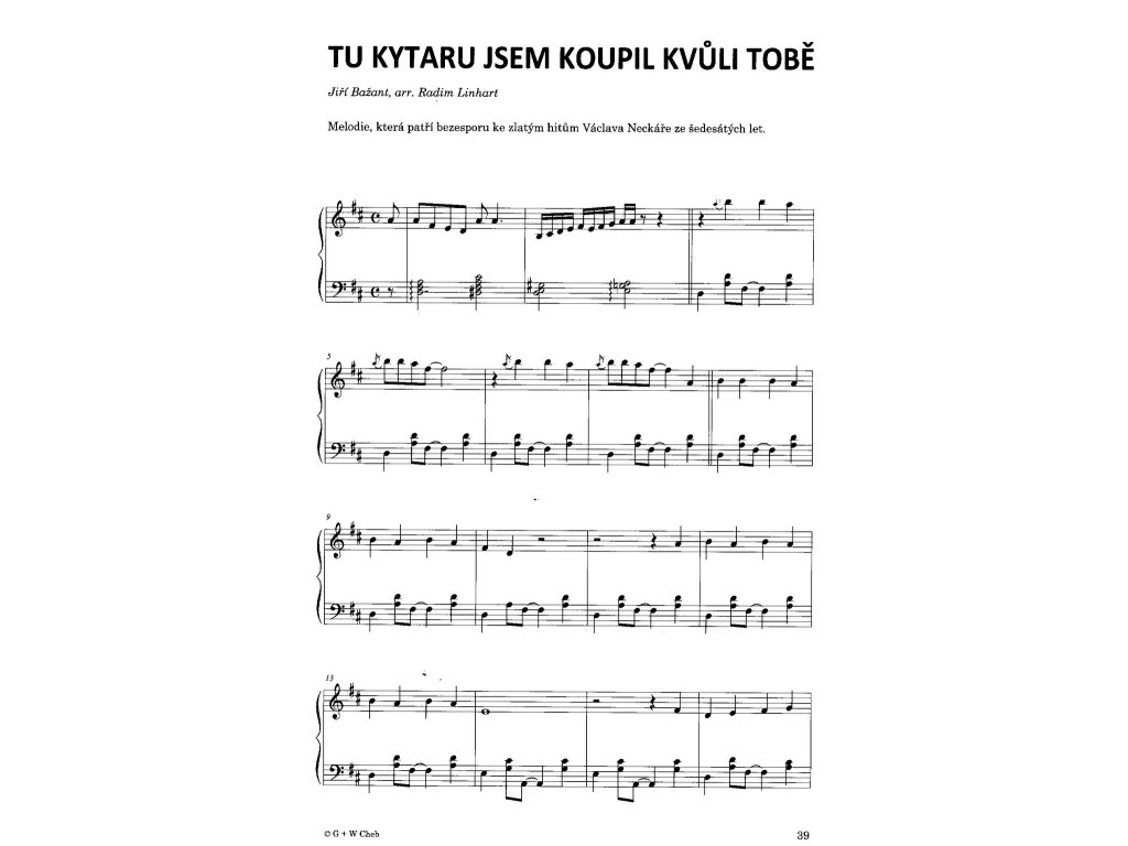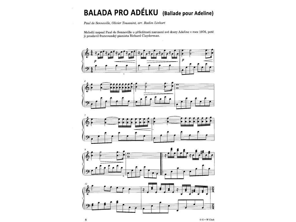 Známé písně, evergreeny a melodie různých hudebních stylů a žánrů v lehké, odpočinkové a technicky nenáročné úpravě pro piano. U každé skladby je krátká poznámka o skladbě, o přibližné obtížnosti, případně upozornění na některé speciální problémy v dané úpravě. Na přiloženém CD jsou všechny skladby nahrány v uvedené úpravě pro Vaši představu jak daná skladba zní. Obtížnost skladeb 4+