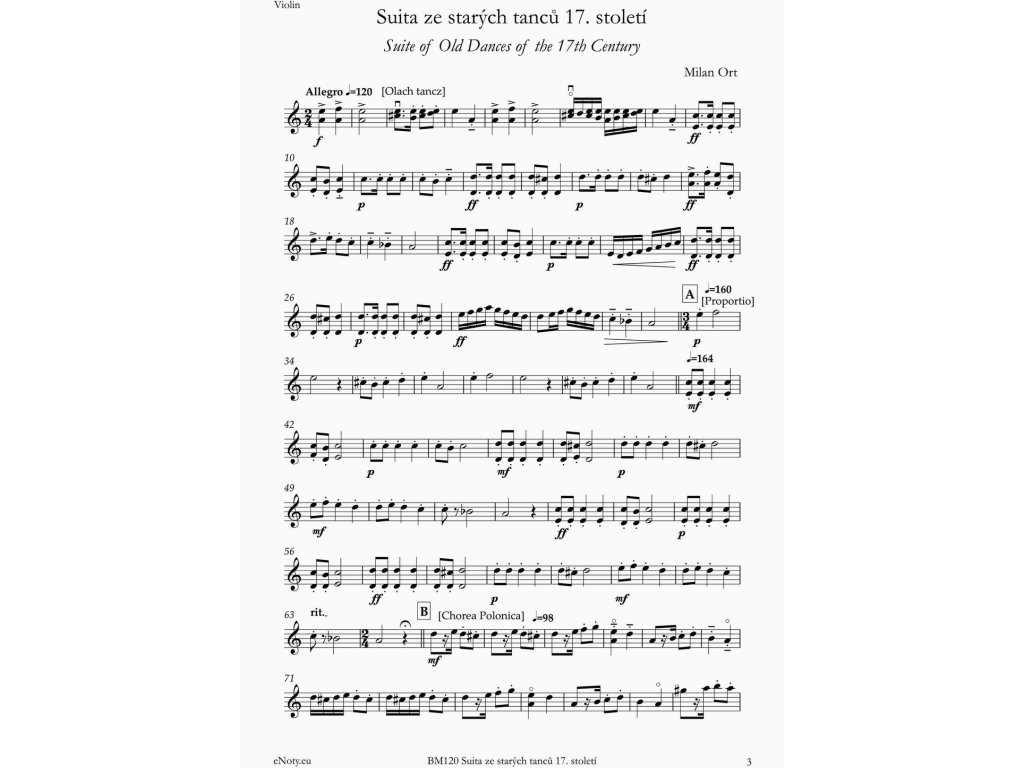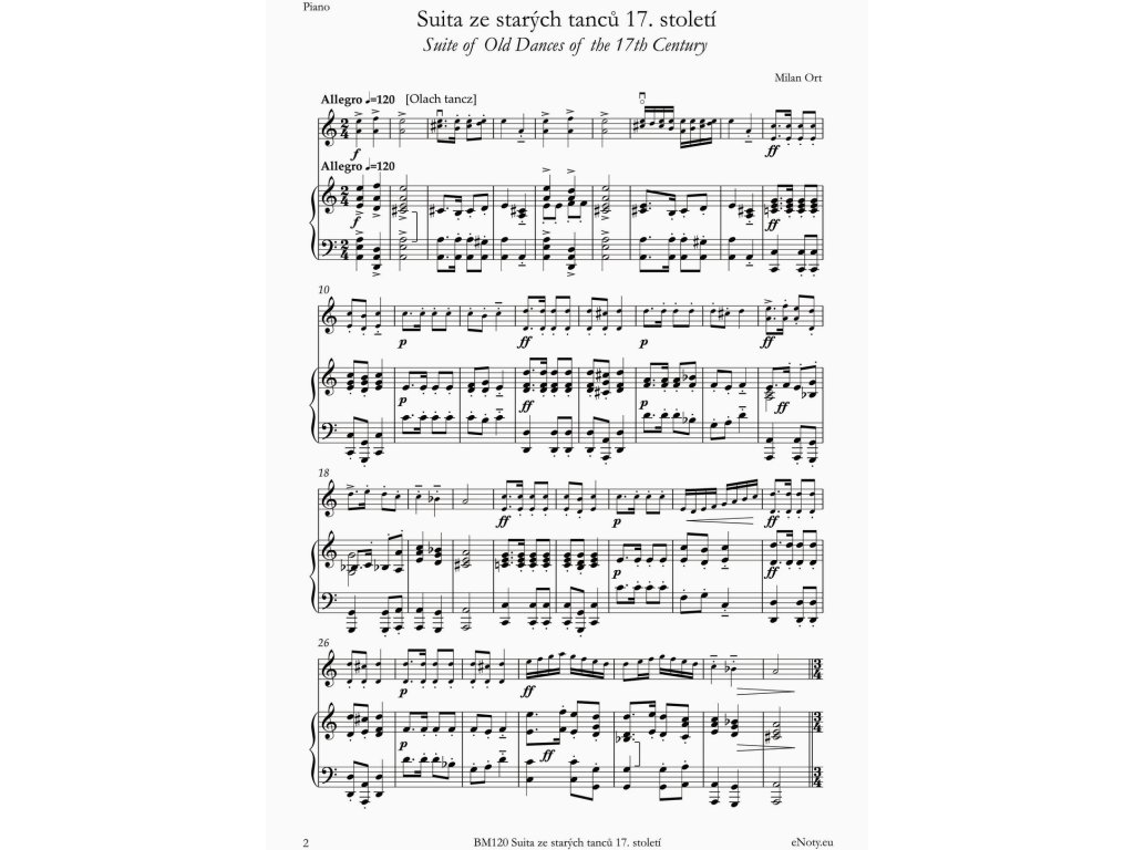 Suita ze starých tanců 17. století je koncertní suita pro housle a klavír. Skladba je složená z tanečních motivů podle starých rukopisů a sbírek ze 17. století., které se dochovaly v několika významných rukopisech a sbornících. Milan Ort, autor této koncertní suity vybral jednotlivé části suity (tance) z Vietorisovy tabulatury (1660-1680), z Kájoniho kodexu (1634-1671) a Pestrého sborníku z Levoče (1621-1674). Jednotlivé tance pečlivě a citlivě spojil do jedné skladby a napsal k nim klavírní doprovod a vytvořil tak velmi zajímavou přednesovou suitu, která Vám představí taneční hudbu 17. století.