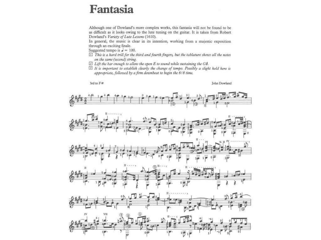 The Renaissance Guitar je velmi obsáhlá kolekce téměř 120 skladeb z období renesance (cca 1400 - 1600) od "kytarových a loutnových" skladatelů jako byli Dowland, Cutting, Milan, Narvaez, Johnson a další. Všechny skladby jsou pečlivě přepsány do moderní notace včetně prstokladu pro současné kytaristy. Sešit je rozdělen na tři oddíly dle obtížnosti skladeb - v jednoduchém aranžmá, pro středně pokročilé a pro pokročilé kytaristy. V sešitě je uveden kód a stránky vydavatele, na kterých je možné si poslechnout případně stáhnout nahrávky.