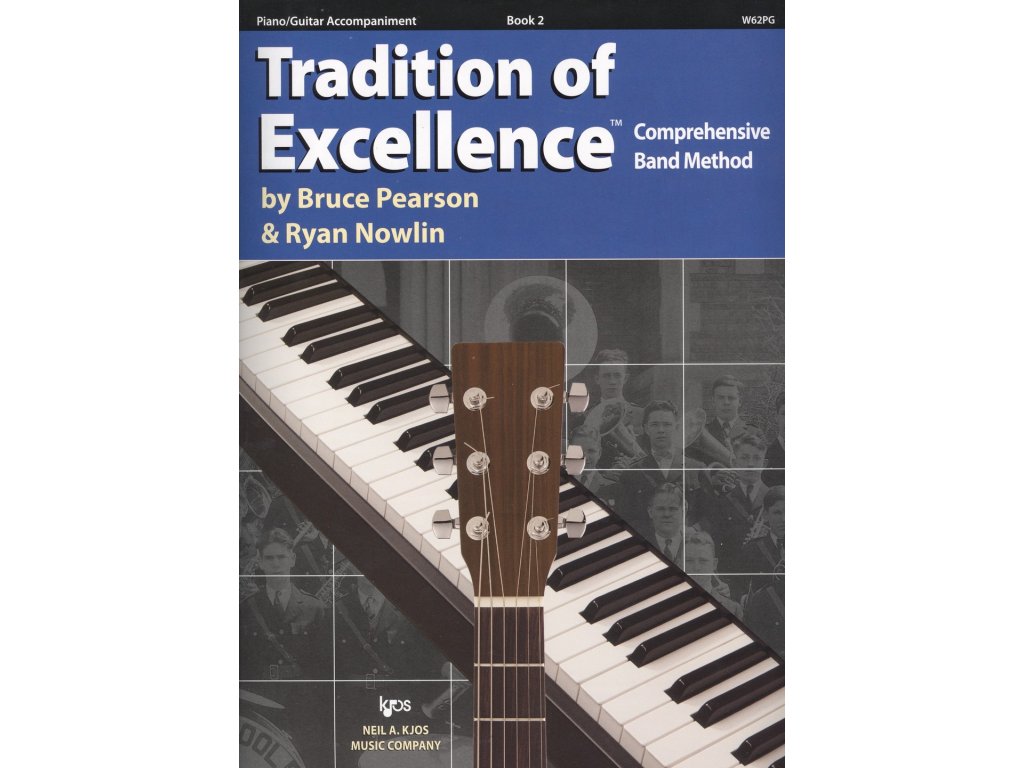 Sešit s klavírním (kytarovým) doprovodem pro sešity série Tradition of Excellence 2. Pro kytarový doprovod je klavírní part doplněn o kytarové akordové značky.