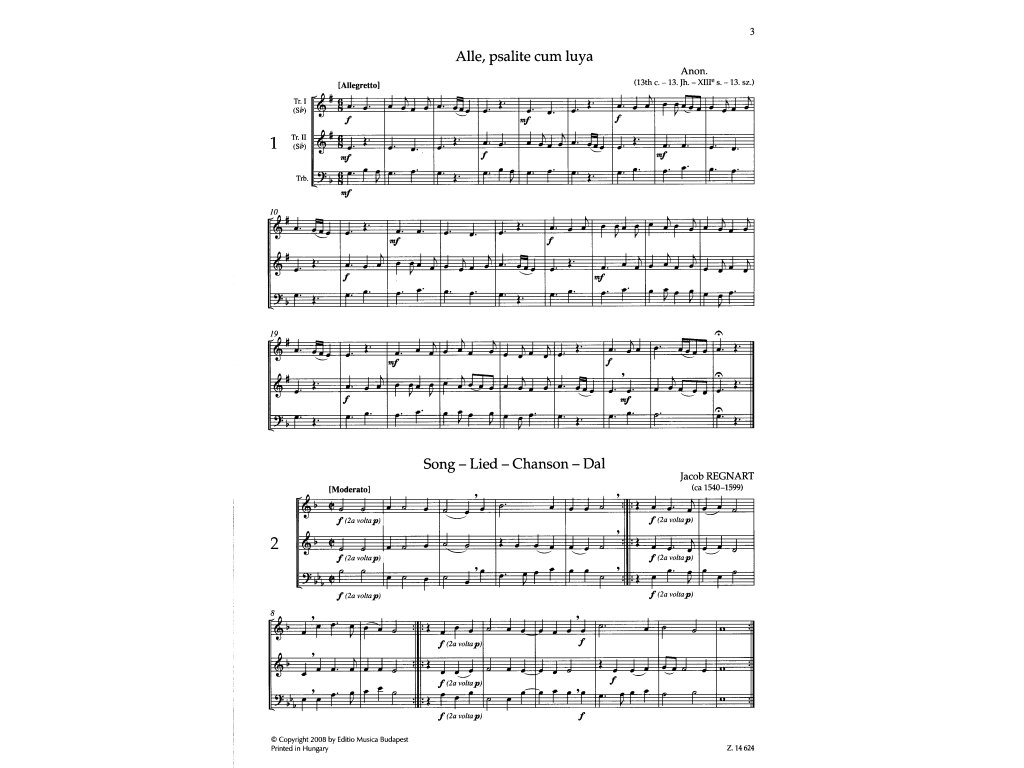 TRIOS FOR BRASS - zajímavý sešit obsahující známé skladby klasické hudby v aranžmá pro brass (žesťové) trio. Skladby jsou aranžovány pro dvě trumpety a trombon a v obtížnosti pro žáky a studenty hudebních škol. Titul obsahuje partituru včetně všech rozepsaných hlasů. Pěkný titul !!!
